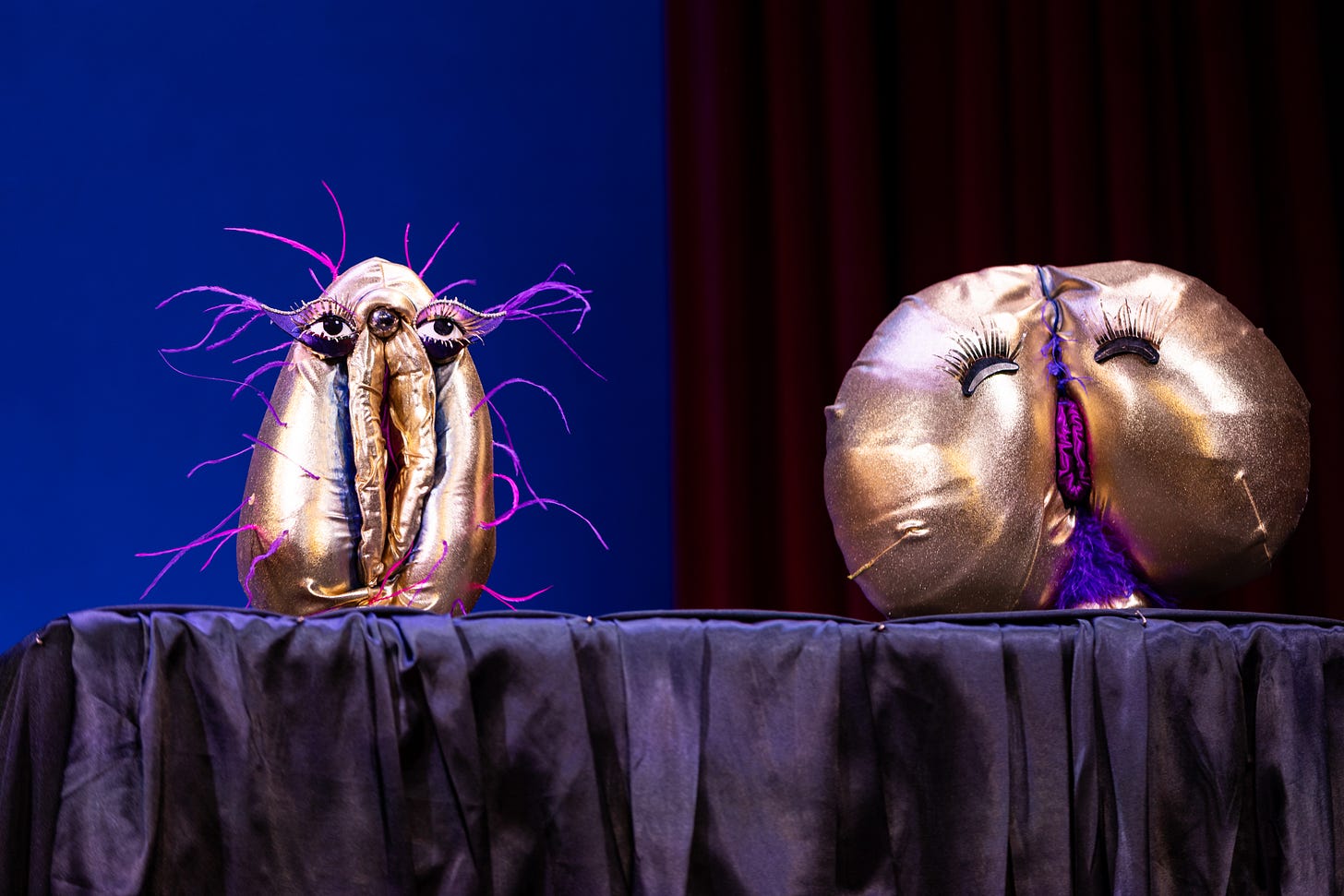 In the script, Pussy Puppet and Butt Hole help me give this particular sex-ed lesson. Pussy is described as a glamorous vulva with the cadence of Eartha Kitt. Butt Hole Puppet is a cute asshole whose personality is reminiscent of the muppet, Beaker.